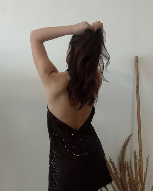 Halter Top Paillettes Marrone