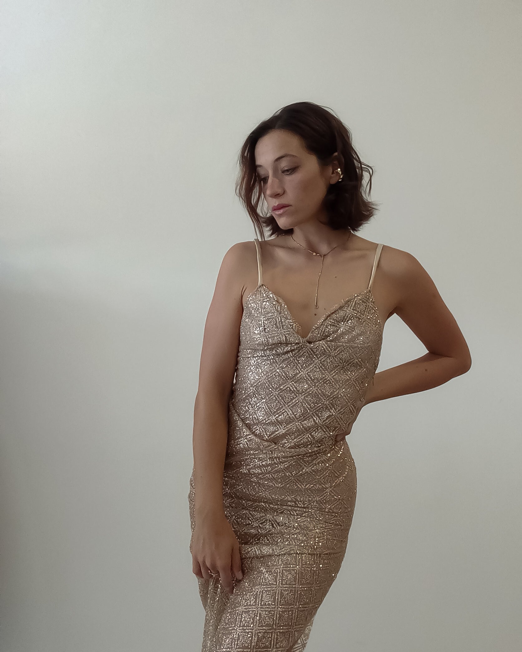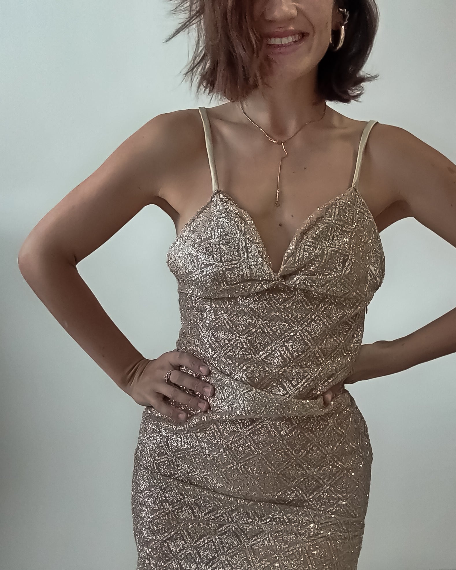 Abito dorato in materiale glitter