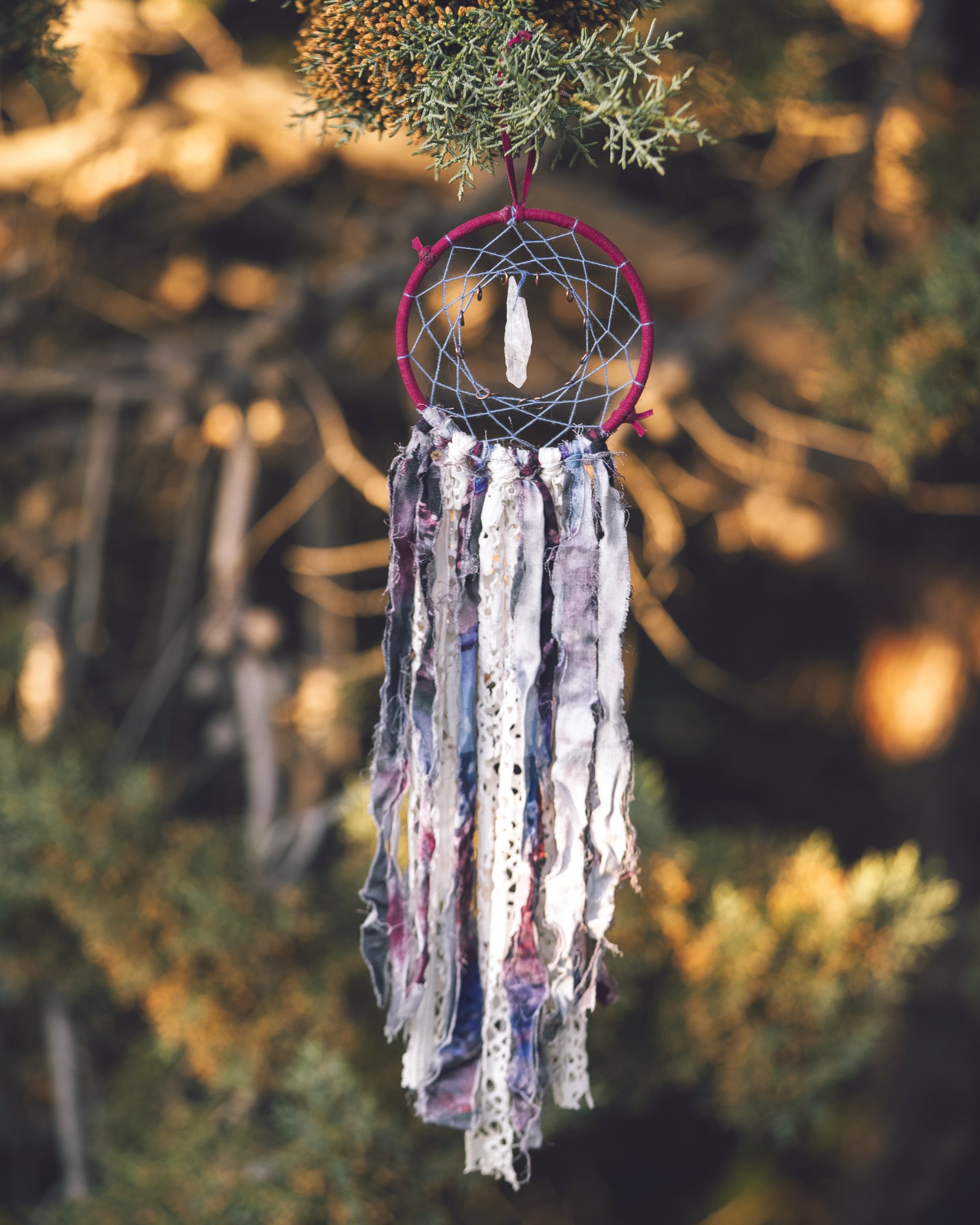 Materiali: Pietra dura, Anellini di ottone, Fettuccia di alcantara, Filo di cotone, Scampoli di tessuti particolari