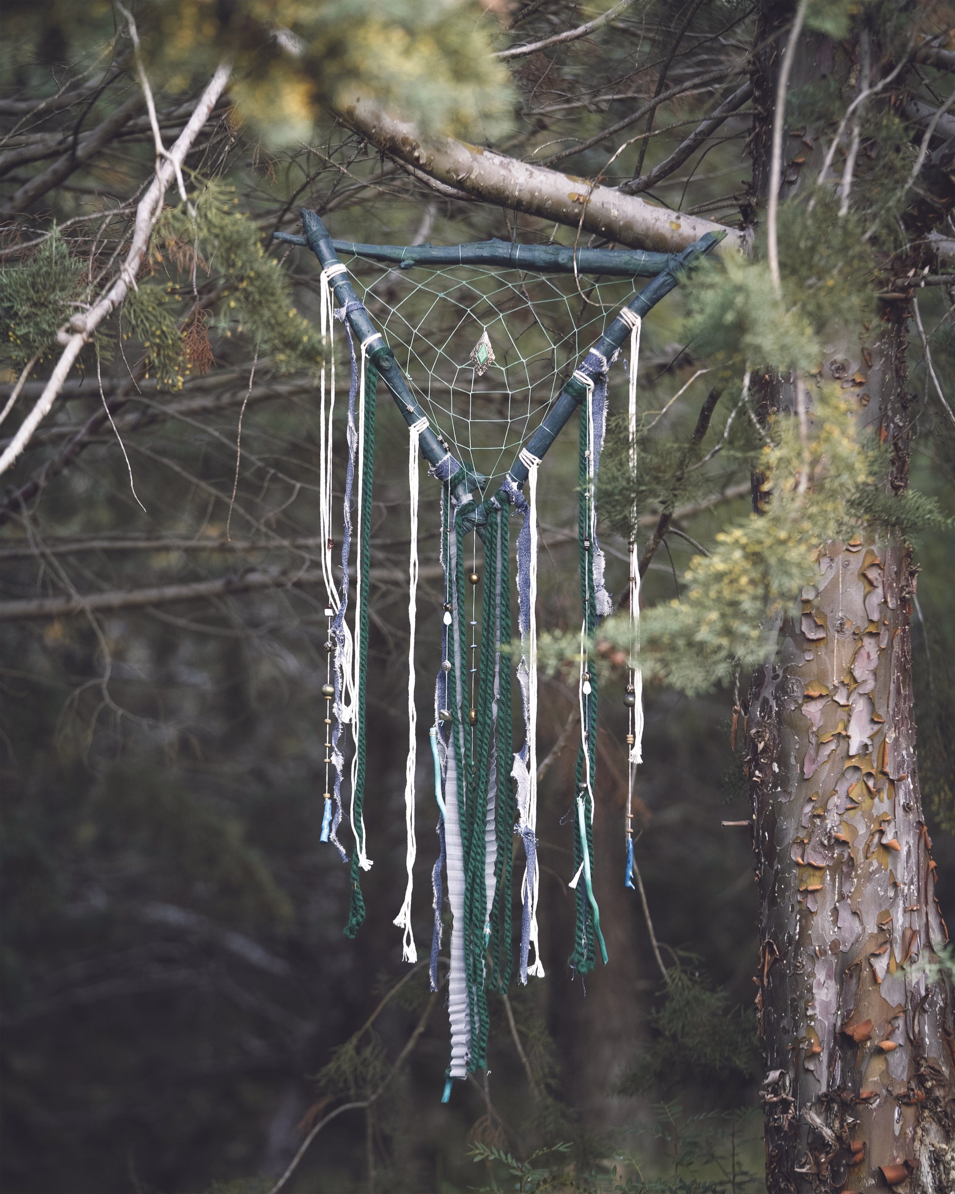 Acchiappasogni da appendere triangolare con rami dipinti.