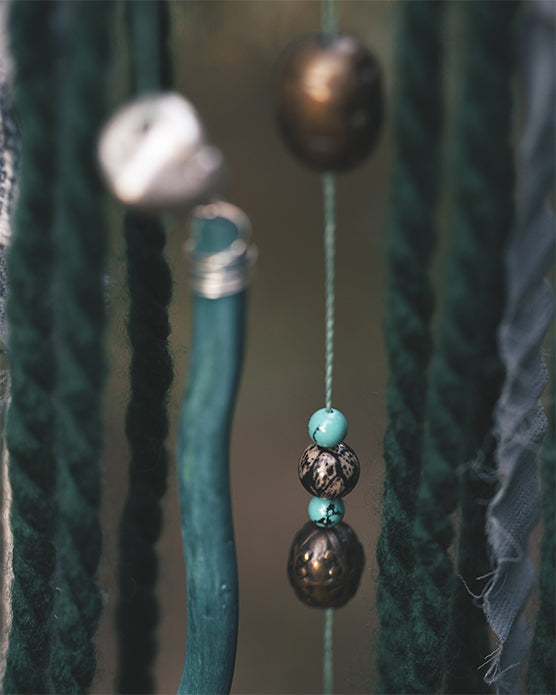 Materiali: Scampoli di tessuti particolari, Filo di cotone cerato, Perline varie